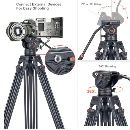 The Cayer BV30L Tripod Kit combines the professional K3 fluid head with aluminum tripod legs and a mid-level spreader. It works with larger camcorders weighing up to 13.2 lbs, creating an effective combination of stability and precise, smooth control, ideal for camcorders and DSLR cameras. .